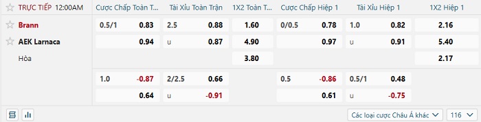 Tip kèo Châu Á full trận Brann vs Larnaca