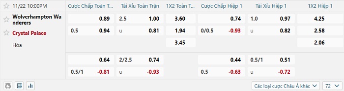 Tip kèo Châu Á full trận Wolves vs Crystal Palace