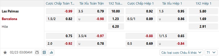 Tip kèo Châu Á full trận Las Palmas vs Barcelona