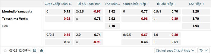 Tip kèo Châu Á hiệp 1 Montedio Yamagata vs Tokushima Vortis