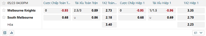 Tip kèo Châu Á hiệp 1 Melbourne Knights vs South Melbourne