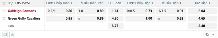 - Tip kèo cá cược Châu Á hiệp 1: Chọn Oakleigh Cannons -1/4