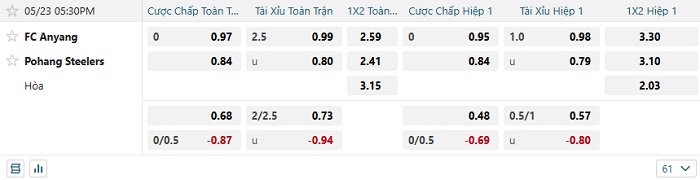 Tip kèo tỷ số Anyang vs Pohang Steelers