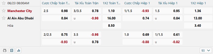 - Dự đoán tỷ số hiệp 1: Man City 2 – 0 Al Ain
