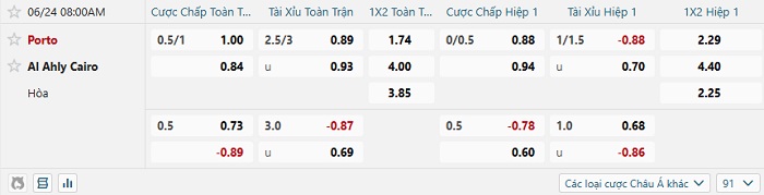 Tip kèo Châu Á full trận Porto vs Al Ahly