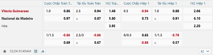 Tip kèo bóng đá trận Vitoria vs Nacional – 01h45 ngày 24/12/2024 VĐQG Bồ Đào Nha