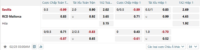 Tip kèo Châu Á full trận Sevilla vs Mallorca
