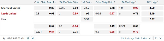 Tip kèo Châu Á hiệp 1 Sheffield vs Leeds United