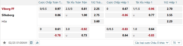 Tip kèo Châu Á hiệp 1 Viborg vs Silkeborg