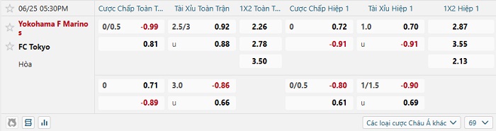 - Dự đoán tỷ số hiệp 1: Yokohama F Marinos 0 – 0 FC Tokyo