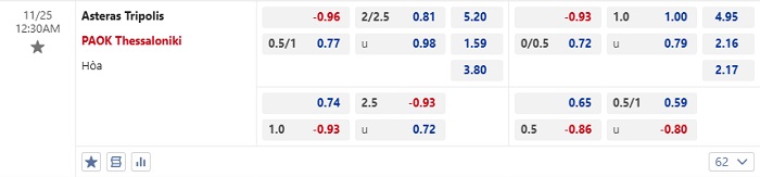Tip kèo Châu Á full trận Asteras vs PAOK