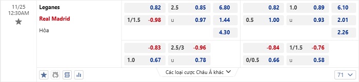 Tip kèo Châu Á hiệp 1 Leganes vs Real Madrid