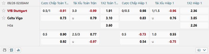 Tip kèo Châu Á hiệp 1 Stuttgart vs Celta Vigo