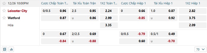 Tip kèo Châu Á full trận Leicester vs Watford