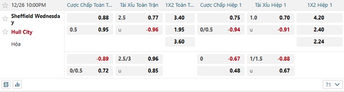 Tip kèo tỷ số Sheffield Wed vs Hull City