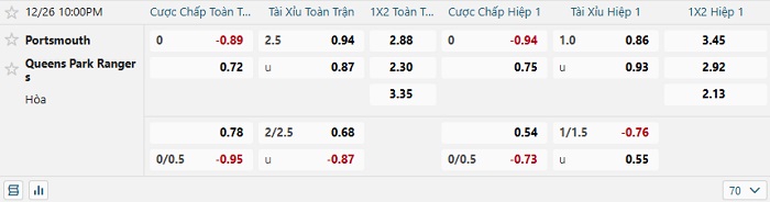 - Dự đoán tỷ số hiệp 1: Portsmouth 0 – 0 QPR