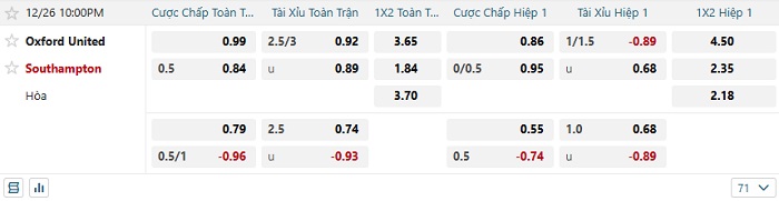Tip kèo tỷ số Oxford vs Southampton