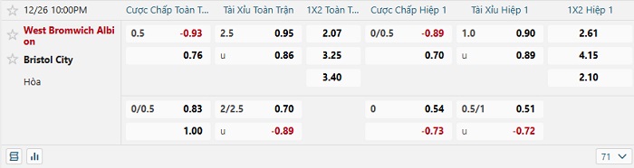 Tip kèo Châu Á hiệp 1 West Brom vs Bristol City