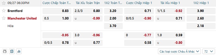 Tip kèo Châu Á full trận Brentford vs Man United
