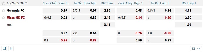 Tip kèo tỷ số Gwangju vs Ulsan HD