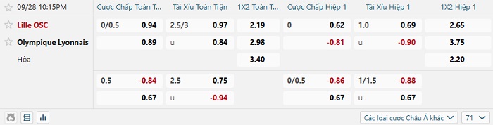Tip kèo Châu Á hiệp 1 Lille vs Lyon