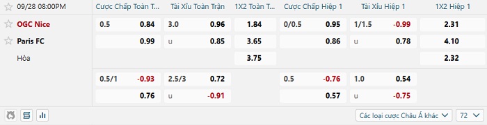 Tip kèo Châu Á hiệp 1 Nice vs Paris FC