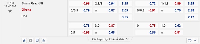 Tip kèo Châu Á full trận Sturm Graz vs Girona
