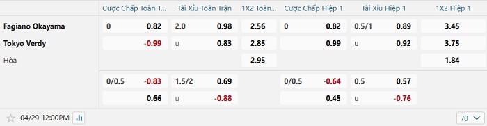 Tip kèo Châu Á hiệp 1 Okayama vs Tokyo Verdy