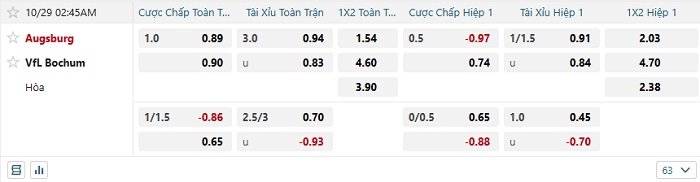 Tip kèo Châu Á hiệp 1 Augsburg vs Bochum