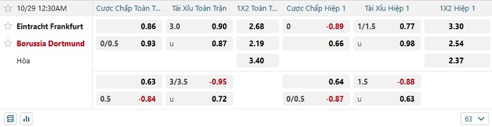 Tip kèo Châu Á hiệp 1 Frankfurt vs Dortmund