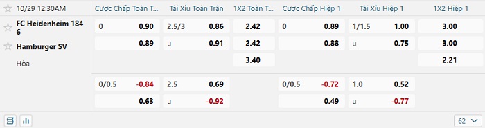 Tip kèo Châu Á hiệp 1 Heidenheim vs Hamburger