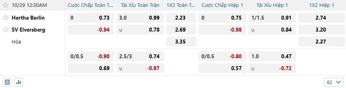 Tip kèo Châu Á hiệp 1 Hertha Berlin vs Elversberg