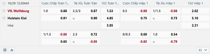 Tip kèo Châu Á hiệp 1 Wolfsburg vs Holstein Kiel