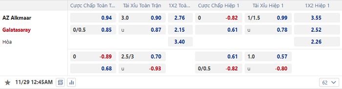 Tip kèo Châu Á hiệp 1 AZ Alkmaar vs Galatasaray