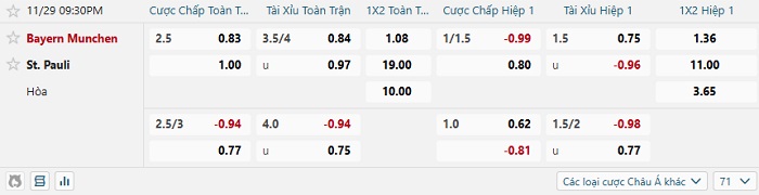 Tip kèo Châu Á full trận Bayern Munich vs St. Pauli