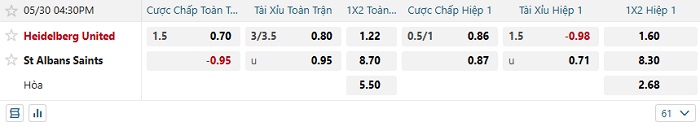 Tip kèo Châu Á hiệp 1 Heidelberg vs St Albans