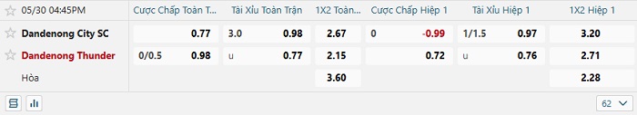Tip kèo Châu Á full trận Dandenong City vs Dandenong Thunder