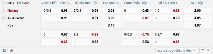 Tip kèo Châu Á full trận Nantes vs Auxerre