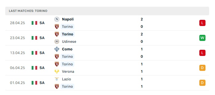 - Phong độ gần đây Torino