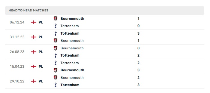 Lịch sử đối đầu Tottenham vs Bournemouth