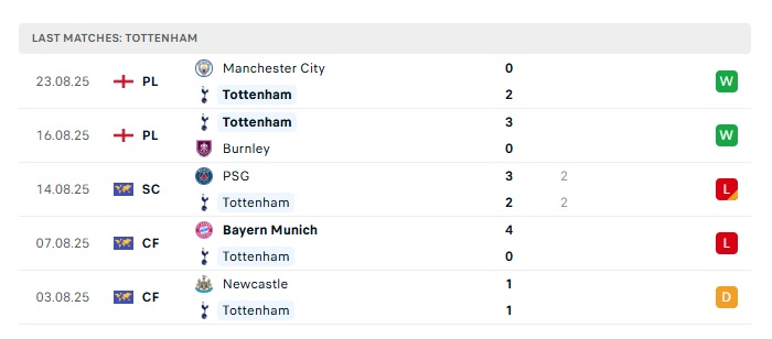 - Phong độ gần đây Tottenham