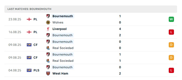- Phong độ gần đây Bournemouth