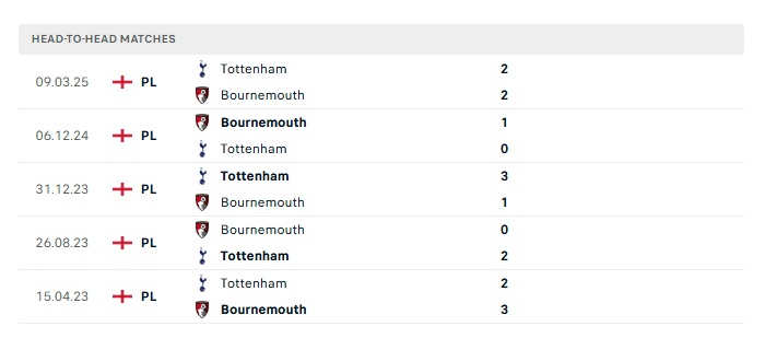 Phong độ gần đây Tottenham vs Bournemouth