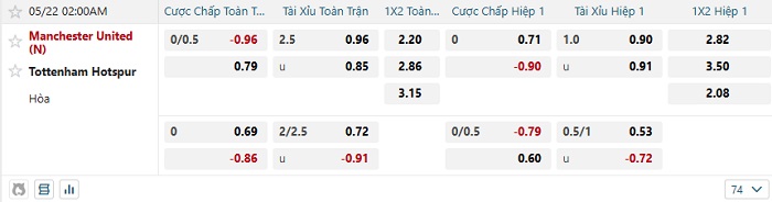 Bảng tỷ lệ kèo bóng đá hôm nay Tottenham vs Man Utd