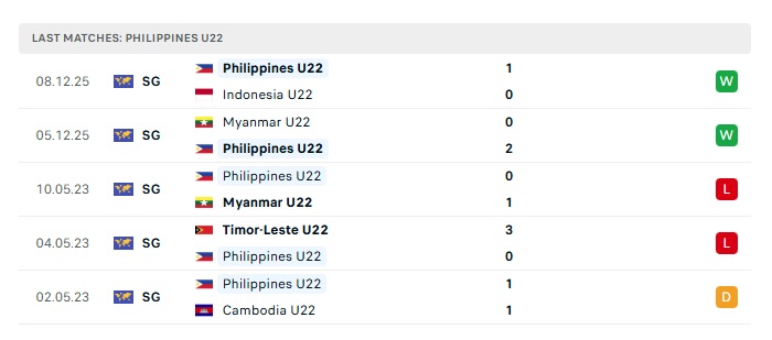 Phong độ gần đây U22 Việt Nam vs U22 Philippines