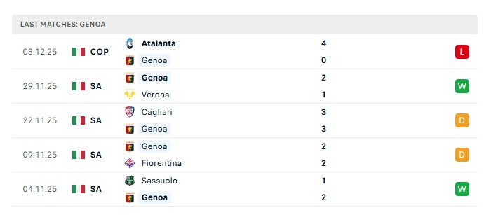 • Phong độ gần đây Genoa