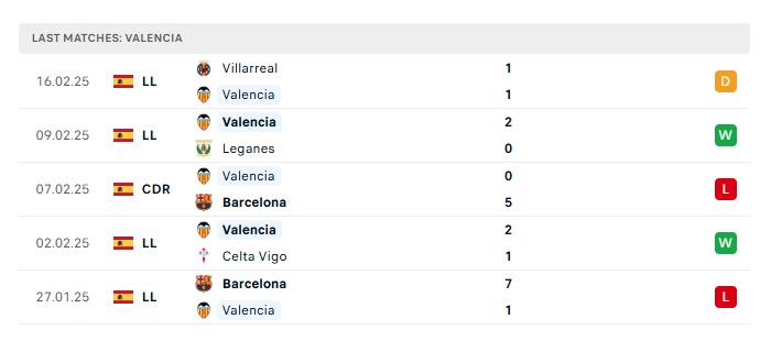 - Phong độ gần đây Valencia