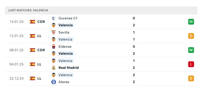 - Phong độ gần đây Valencia