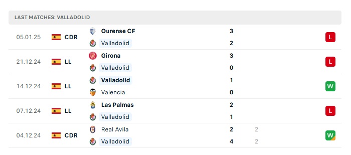 - Phong độ gần đây Valladolid