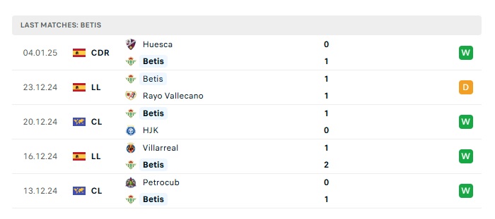 - Phong độ gần đây Real Betis